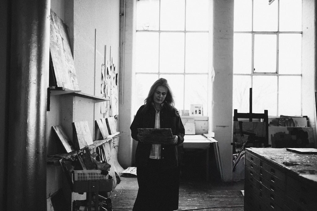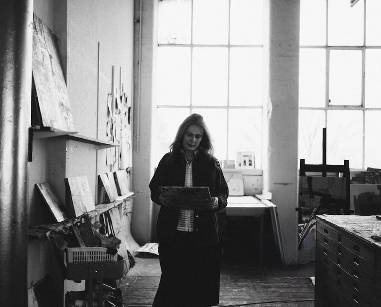 With a background in embroidery, Kirsty's practice is rooted in a strong sense of materiality and layered detail, blending stitch-like, mark making processes with expressive paint.