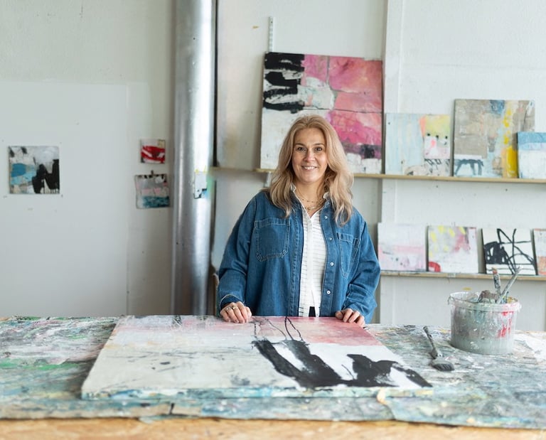 Using collage, texture, and a process of layering and revealing, I treat painting as both a therapeutic act and a sometimes-frustrating conversation. The result is work that I hope feels lived-in and surprising, inviting viewers to lean in and look a little closer.